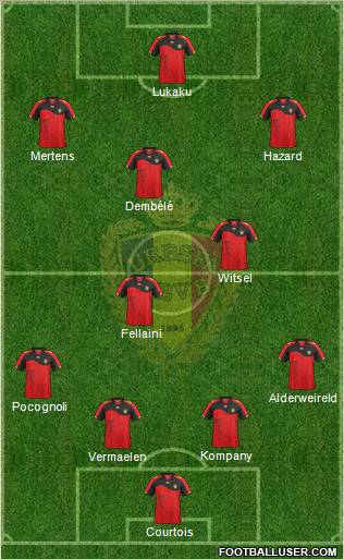 Courtois · Vermaelen · Vertonghen · Toby · Witsel · Dembélé · Naigollan · Fellaini · Hazard · Mertens · Mirallas