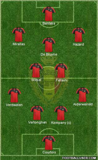 Courtois · Verthongen · Kompany · Vermaelen · Witsel · Vadis · Dembele · Hazard · Mertens · Mirallas · Benteke