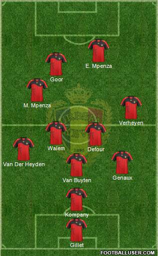 Courtois · Vertonghen · Kompany · Vermaelen · Vanden Borre · Fellaini · Witsel · Defour · Mertens · Hazard · Lukaku