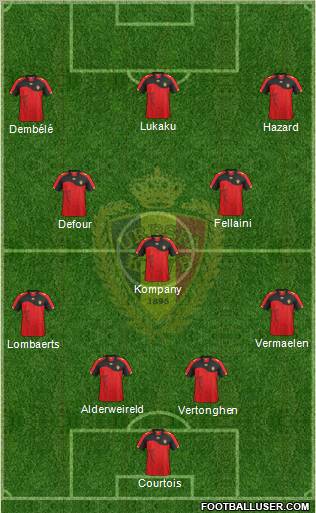 Courtois · Kompany · Vermaelen · Vertonghen · Vanden Borre · Nainggolan · Fellaini · Witsel · Dembele · Hazard · Lukaku