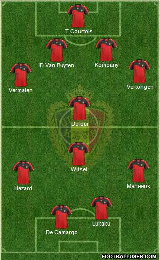 Courtois · Kompany · Vertonghen · Vermaelen · Vanden Borre · Fellaini · Witsel · De Bruyne · Mertens · Hazard · Lukaku