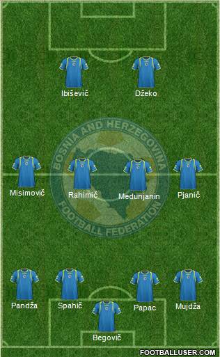 Spahic · Zukanovic · Salihovic · Mujdza · Meduljanin · Pjanic · Lulic · Misimovic · Dzeko · Ibiševic