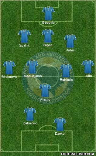 Begovic · Pandza · Spahic · Papac · Mujdza · Rahimic (60-70 min) · Lulic · Salihovic · Misimovic · Dzeko · Ibisevic