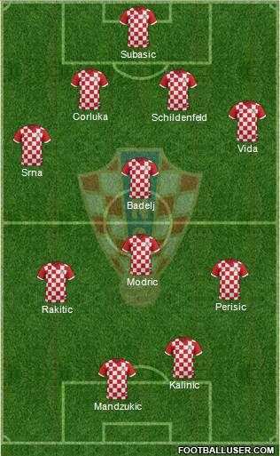 Subasic · Schildenfeld · Corluka · Srna · Vida · Modric · Rakitic · Brozovic · Kovacic · Perisic · Mandzukic