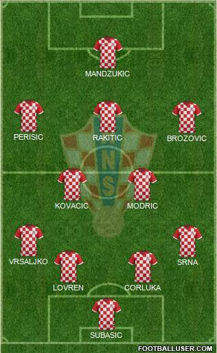 Subasic · Strinic · Vida · Vrsaljko · Corluka · Badelj · Modric · Srna · Perisic · Rakitic · Mandzukic
