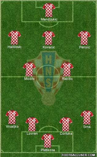 Subasic · Lovren · Corluka · Srna · Strinic · Rakitic · Modric · Halilovic · Kovacic · Mandzukic · Perisic