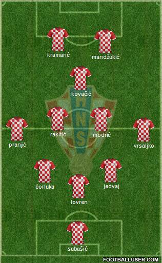 Subasic · Lovren · Corluka · Srna · Pranjic · Modric · Rakitic · Perisic · Kovacic · Jelavic · Mandzukic