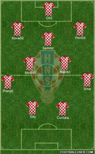 Pletikosa · Vedran Ćorluka · Dejan Lovren · Darijo Srna · Danijel Pranjić · Ivan Rakitić · Luka Modrić · Mateo Kovačić · Ivan Perišić · Ivica Olić · Mario Mandžukić
