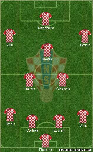 Pletikosa · Pranjic · Srna · Corluka · Lovren · Modric · Rakitic · Kovacic · Perisic · Olic · Mandzukic