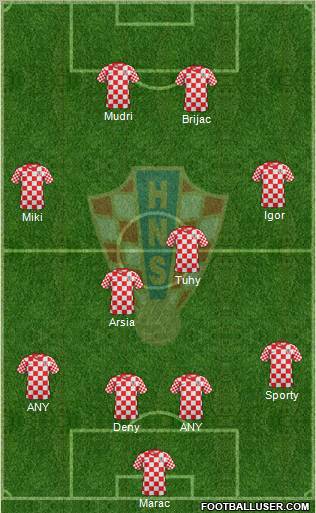 1 Pletikosa · 5 Corluka · 4 Lovren · 3 Srna · 2 Strinic · 6 Vukojevic · 10 Modric · 7 Rakitic · 8 Perisic · 11 Kranjcar · 9 Mandzukic