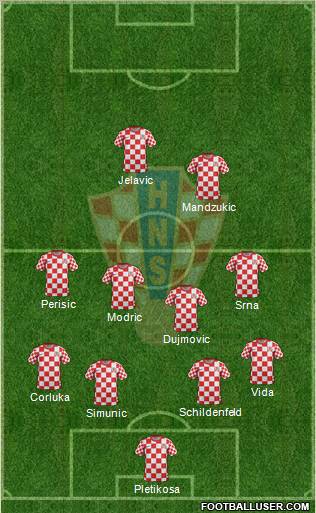 Pletikosa · Srna · Strinic · Corluka · Schindelfeld · Rakitic · Vukojevic · Perisic · Modric · Jelavic · Mandzukic