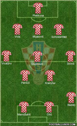 Kelava Ivan · Pletikosa Stipe · Subašić Danijel · Schildenfild G. · Lovren Dejan · Šimunić Josip · Vida Domagoj · Pranjić Danijel · Čorluka Vedran · Strinić Ivan · Vrsaljko Šime · Dujmović T. · Vukojević O. · Modrić Luka · Badelj Milan · Kranjčar Niko · Perišić Ivan · Rakitić Ivan · Srna Darijo · Olić Ivica · Mandžukić M. · Jelavić Nikica, ...
