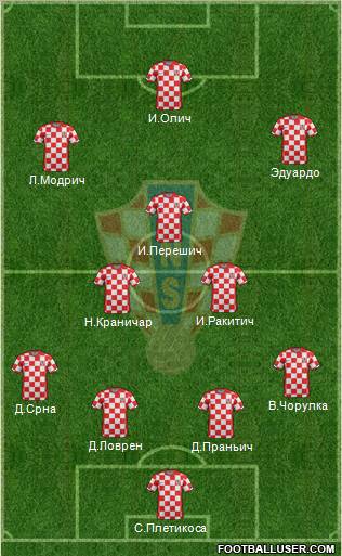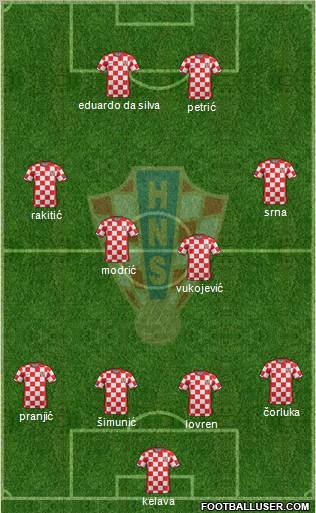 Pletikosa · Ćorluka · Lovren · Pranjić · Srna · Vukojević · Rakitić · Modrić · Kranjčar · Mandžukić · Jelavić