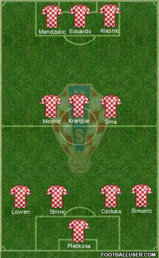 Pletikosa · Corluka · Simunic · Schildenfeld · Vida · Modric · Rakitic · Dujmovic · Srna · Mandzukic · Olic