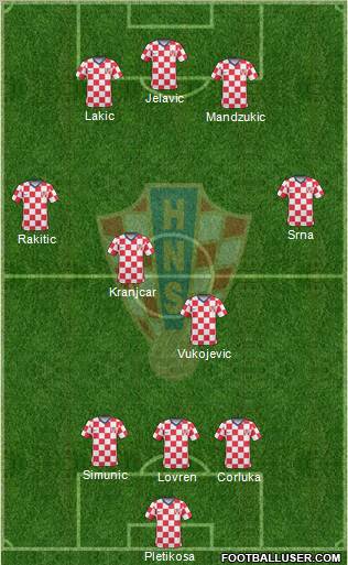 Pletikosa · Simunic · Lovren · Strnic · Corluka · Vukojevic · Srna · Kranjcar · Modric · Jelavic · Eduardo