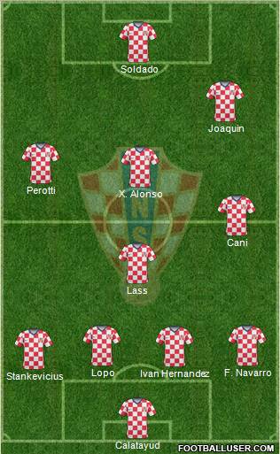 G : Pletikosa · DC : Lovren · DC : Simunic · DG : Cale · DD : Corluka · MOC : Modric · MDC : Vujojevic · MG : Raketic · MD : Srna · BU : Olic · BU : Petric