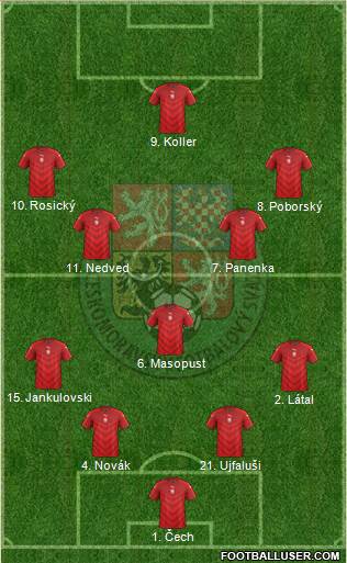 Cech · Popluhar · Jankulovsky · Ulfalusi · Grygera · Masopust · Pluskal · Nedved · Panenka · Poborsky · Koller