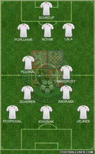 1.Vaclik · 3.Celustka · 6.Kalas · 5.Coufal · 18.Boril · 15.Soucek · 21.Krai · 8.Darida · 9.Holes · 12.Masopust · 10.Schick