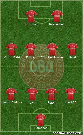 Sorensen · Kjaer · Agger · Poulson · Jacobson · Poulson · Krohn-Deli · Rommedahl · Eriksen · Junker · Bendtner