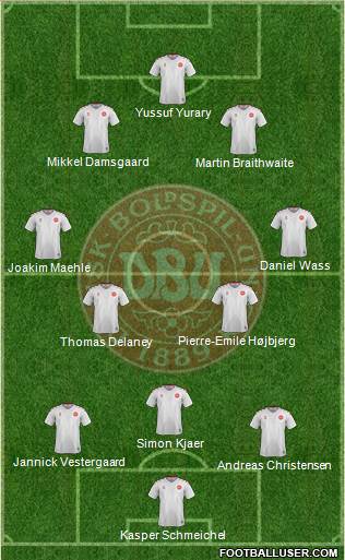 Schmeichel · Christensen · Kjaer · Vestergaard · Delaney · Maehle · Larsen · Höjbjerg · Braithwaite · Damsgaard · Poulsen