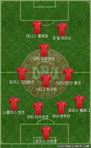 스테판 안데르센 · 시몬 캬르 · 다니엘 아게르 · 시몬 폴센 · 라스 야콥센 · 윌리암 크비스트 · 니키 짐링 · 야콥 폴센 · 미카엘 크론델리 · 크리스티안 에릭센 · 니클라스 벤트너