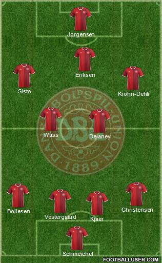 K.Schmeichel · Christensen · Kjaer · Dalsgaard · Stryger Larsen · Kvist · Delaney · Eriksen · Sisto · Poulsen · Jorgensen