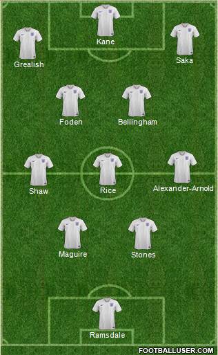 Shaw · Alexander-Arnold · Stones · Walker · Pickford · Rice · Kane · Palmer · Bellingham · Foden · Saka