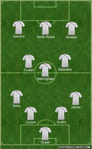 Pickford · Stones · Branthwaite · Shaw · Arnold · Rice · Bellingham · Maddison · Foden · Palmer · Kane