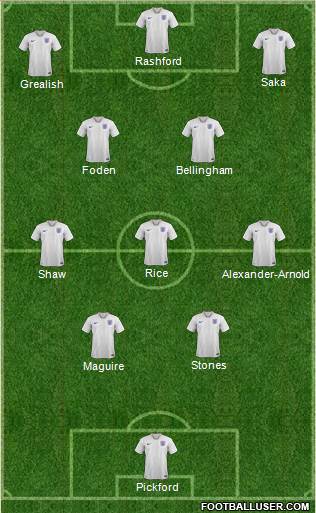 Kane · Grealish · Saka · Bellingham · Foden · Rice · Alexander-Arnold · Shaw · Stones · Maguire · Pickford
