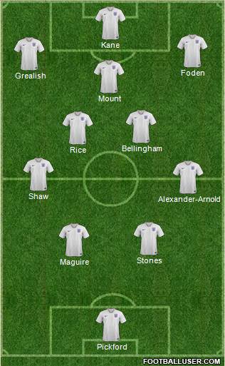 Kane · Rashford · Foden · Sancho · Rice · Bellingham · Shaw · Alexander-Arnold · Stones · Maguire · Pickford
