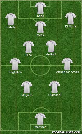 Banks · Moore · Ferdinand · A.Cole · Walker · Gerrard · Gascoigne · Beckham · Charlton · Rooney · Kane