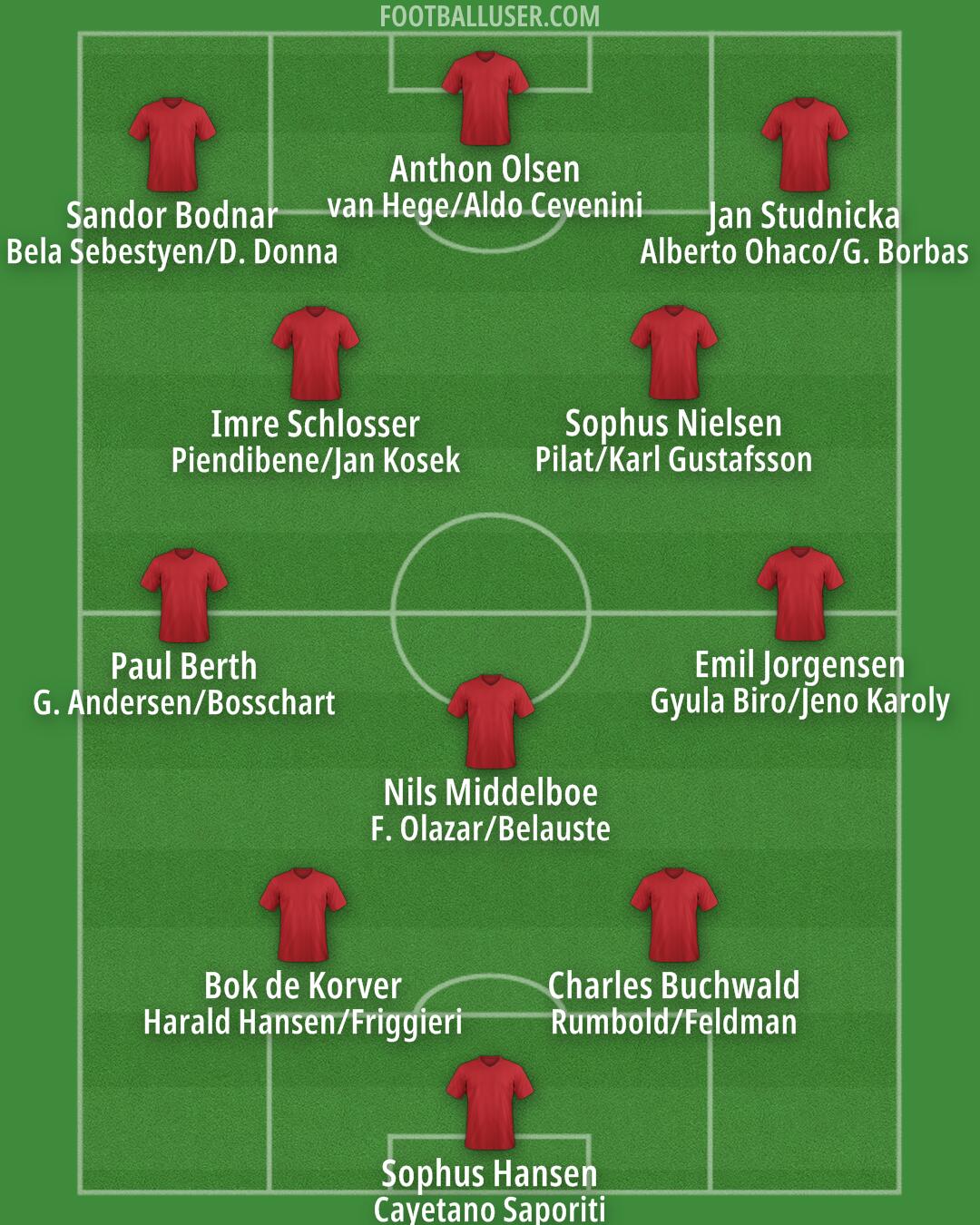 9 - Charlton · 7 - Matthews · 8 - Greaves · 10 - Linekar · 6 - B. Moore [c] · 1 - Banks · 2 - G. Neville · 20 - Terry · 5 - Ferdinand · 10 - Shearer · 8 - Gerrard