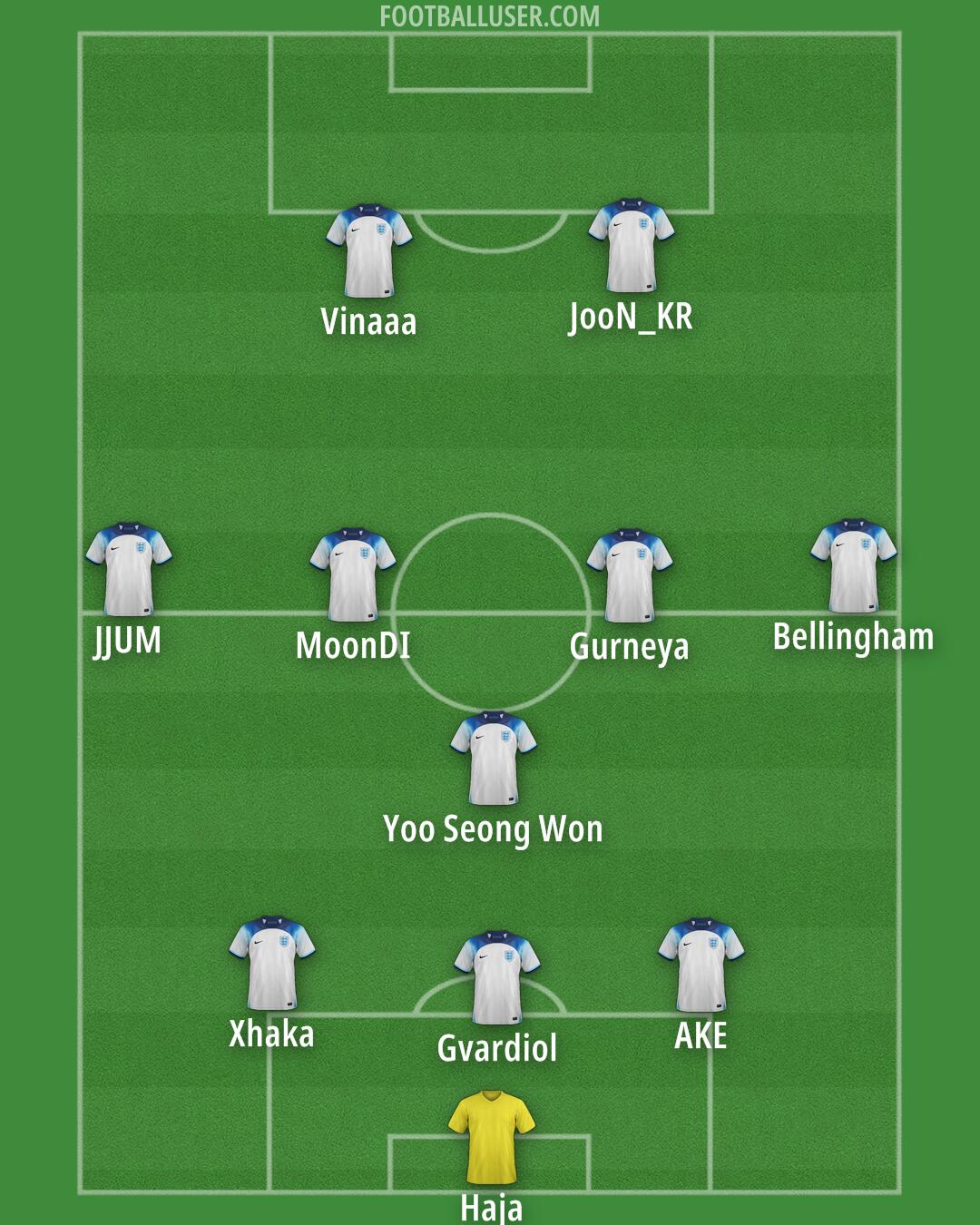 Trafford (22) (Burnley) · Colwill (22) (Chelsea) · Rico Lewis (20) (Manchester City) · Branthwaite (22) (Everton) · Archie Gray (18) (Tottenham) · Mainoo (19) (Manchester United) · Bellingham (21) (Real Madrid) · Cole Palmer (22) (Chelsea) · Elliot (21) (Liverpool) · Gittens (20) (B. Dortmund) · Nwaneri (17) (Arsenal)