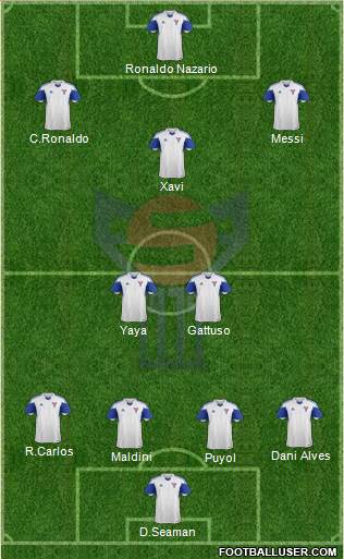D.Seaman · Puyol · Maldini · Dani Alves · R.Carlos · Yaya · Gattuso · Xavi · C.Ronaldo · Messi · Ronaldo Nazario