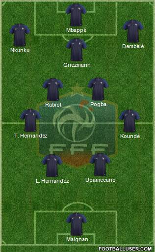 M.Maignan · T.Hernandez · J.Koundé · D.Upamecano · W.Saliba · K.Mbappé (C) · M.Olise · A.Tchouameni · A.Griezmann · A.Rabiot · E.Camavinga