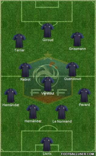 lloris · varane · upamecano · kounde · tchouameni · hernandez · rabiot · dembele · griezmann · mbappe · giroud