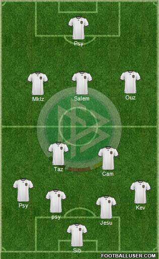 (23) Mario Gomez · (11) Miroslav Klose · (10) Lukas Podolski · (7) Bastian Schweinsteiger · (8) Mesut Ozil · (13) Thomas Muller · (3) Arne Friedrich · (5) Serdar Tasci · (16) Philipp Lahm · (17) Per Mertesacker · (1) Manuel Neuer