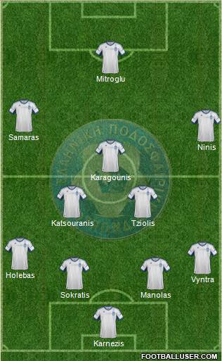 Karnezis · Manolas · Sokratis · Torosidis · Holebas · Maniatis · Tziolis · Karagounis · Samaras · Salpingidis · Mitroglou