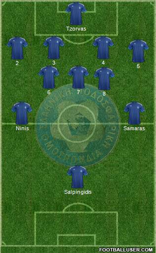 Salpingidis · Gekas(Samaras) · Ninis · Karagounis · Katsouranis · Fotakis(Tziolis) · Holebas · Torosidis · Papastathopoulos · Papadopoulos · Sifakis