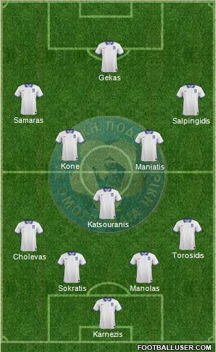 Glykos · Manolas · Sokratis · Torosidis · Holebas · Maniatis · Samaris · Salpingidis · Karagounis · Samaras · Mitroglou