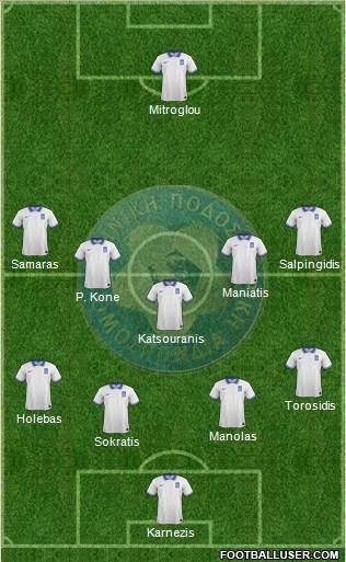 Mitroglou · Samras · Konè · Maniatis · Salpingidis · Karagounis · Holebas · Torosidis · Sokratis · Manolas · Karnezis
