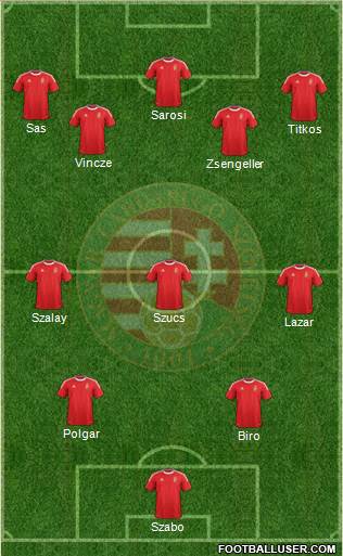 Hiden · K. Fogl (RB) · J. Fogl (LB) · Happel (CB) · Lorant (CB) · Ocwirk (DMF) · Bozsik (CMF) · Sarosi (AMF) · Czibor (LW) · Puskas (CF) · Kocsis (CF)