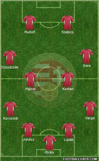 Bogdán · Vanczák · Lipták · Juhász · Varga · Koman · Huszti · Gera · Szabics · Dzsudzsák · Szalai