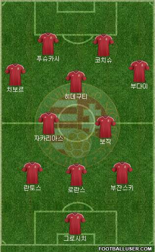 Grosics · Lorant · K. Fogl · J. Fogl · Bozsik · Lazar · Sarosi · Hidegkuti · Puskas · Czibor · Kocsis