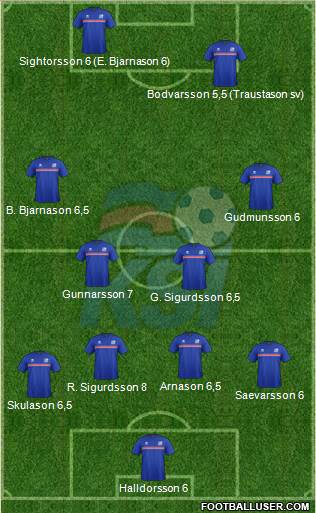 Halldorsson · Arnason · Saevarsson · Skulason · R.Sigurdsson · Gunnarsson · B.Bjarnason · Gudmundsson · G.Sigurdsson · Bodvarsson · Sightorsson