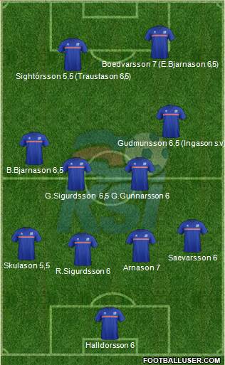 Halldorsson 6 · Skulason 6 · 5 · Saevarsson 6 · R. Sigurdsson 8 · Arnason 6 · 5 · G. Sigurdsson 6 · 5 · Gunnarsson 7 · Gudmunsson 6 · B. Bjarnason 6 · 5 · Bodvarsson 5 · 5 (Traustason sv) · Sightorsson 6 (E. Bjarnason 6)