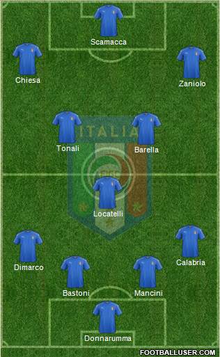 G.Donnarumma (C) · R.Calafiori · A.Bastoni · F.Bastoni · S.Tonali · D.Frattesi · F.Dimarco · N.Barella · R.Bellanova · G.Raspadori · M.Retegui