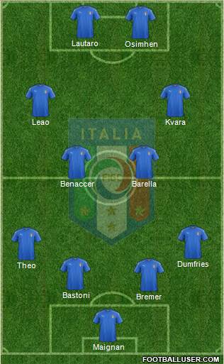 Dimarco · Calabria · Donnarumma · Tonali · Verratti · Barella · Belotti · Chiesa · Zaniolo · Bastoni · Romagnoli