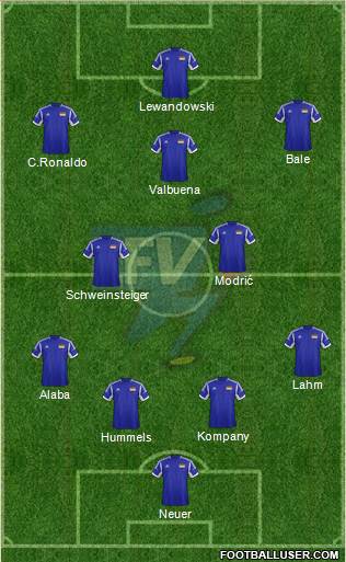 Neuer · Hummels · Kompany · Alaba · Lahm · Schweinsteiger · Modrić · Valbuena · C.Ronaldo · Bale · Lewandowski
