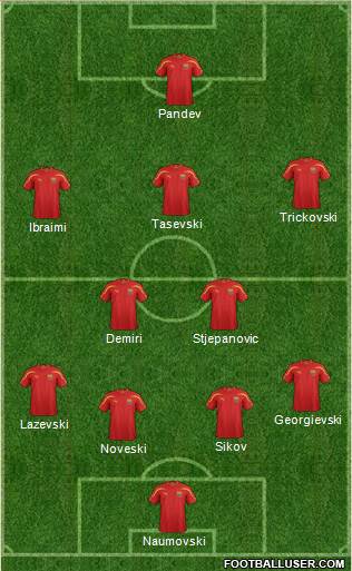 Naumovski · Noveski · Sikov · Lazevski · Georgievski · Demiri · Stjepanovic · Ibraimi · Tasevski · Trickovski · Pandev